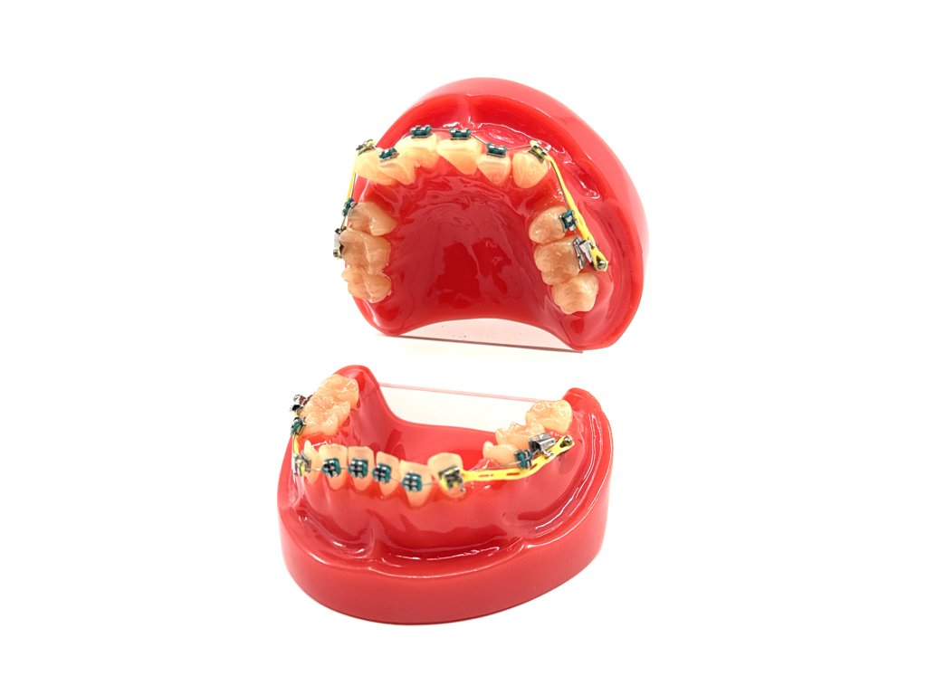 Model lidského chrupu s rovnátky je výborným výukovým nástrojem pro studenty, zubaře a dentální hygienistky. Díky detailnímu zpracování ortodontických rovnátek, gumiček a drátků se stane nepostradatelným pomocníkem při vysvětlování zásad léčby a ústní hygieny pacientům. Zuby mají mezizubní prostory a různé defekty zakřivení. Tento model, je skvělou pomůckou, na které lze znázornit správnou péči při ortodontické léčbě, ať už se jedná o techniku čištění zubním kartáčkem, jednosvazkovým zubním kartáčkem (soĺíčkem) nebo mezizubním kartáčkem či flossem.