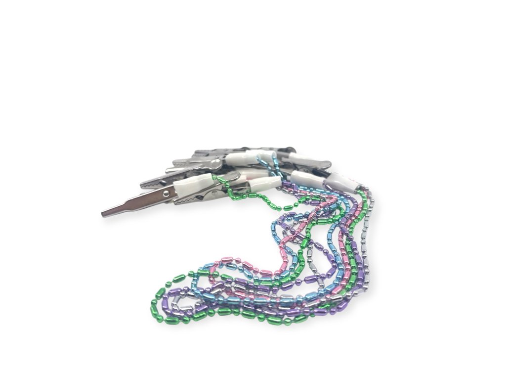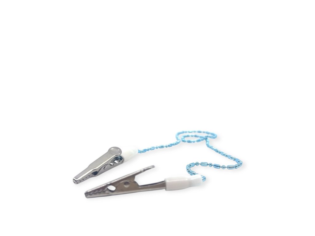 Kovový klip na uchycení stomatologických ubrousků chránící pacienta. Lanko je z lehkého kovu, délka 49,5cm, autoklávovatelný.