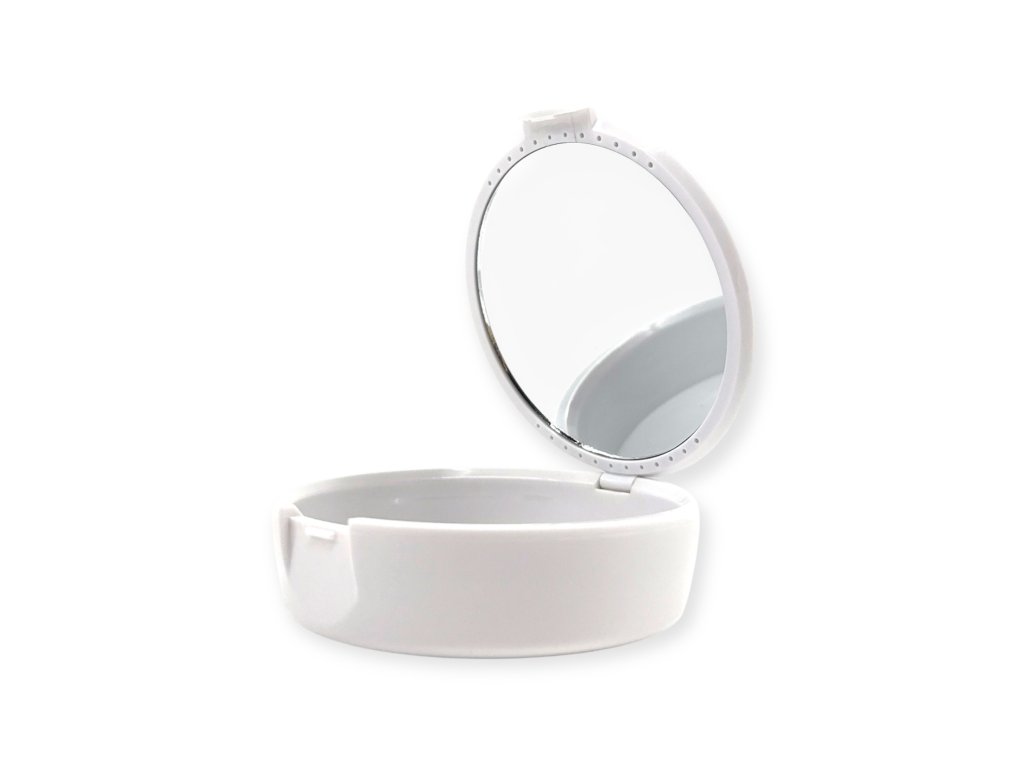 Praktická krabička se zrcátkem slouží k hygienickému uchovávání rovnátek nebo částečných zubních náhrad a současně je chrání před poškozením. Je vyrobena z kvalitního plastu, s uzavíratelným mechanismem v elegantním designu. Po otevření nabízí kvalitní zrcadlovou plochu. Díky malým rozměrům je výborným pomocníkem na cesty i do kabelky.