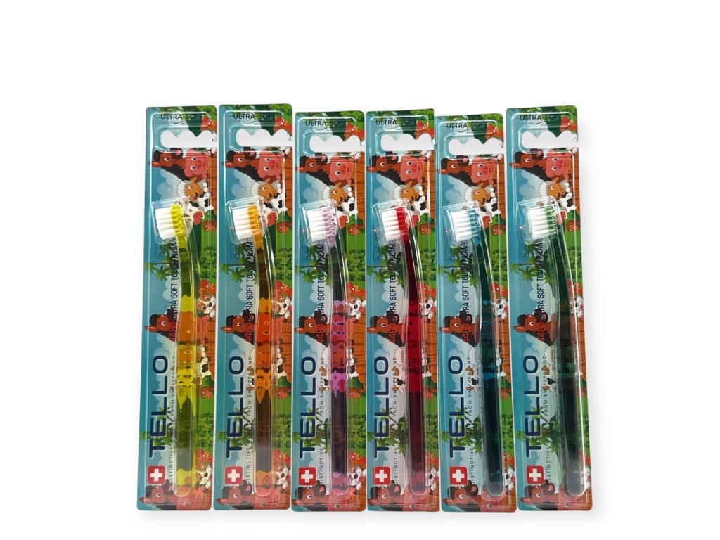 TELLO 4480 Junior Ultra Soft je ultra jemný zubní kartáček, 4480 Nollex vláken o průměru 0,10 mm efektivně a zároveň šetrně odstraňují zubní plak. Má malou oválnou hlavu, kterou se jednoduše dostanete i do hůře přístupných míst, ergonomická rukojeť má oválný tvar, je vyrobena z průhledného PET v 6 různých barvách s bílými Nollex vlákny. Je vhodný pro velmi citlivé zuby a dásně, pro uživatele s malou čelistí, děti ,šetrně čistí zuby a dásně bez podráždění.