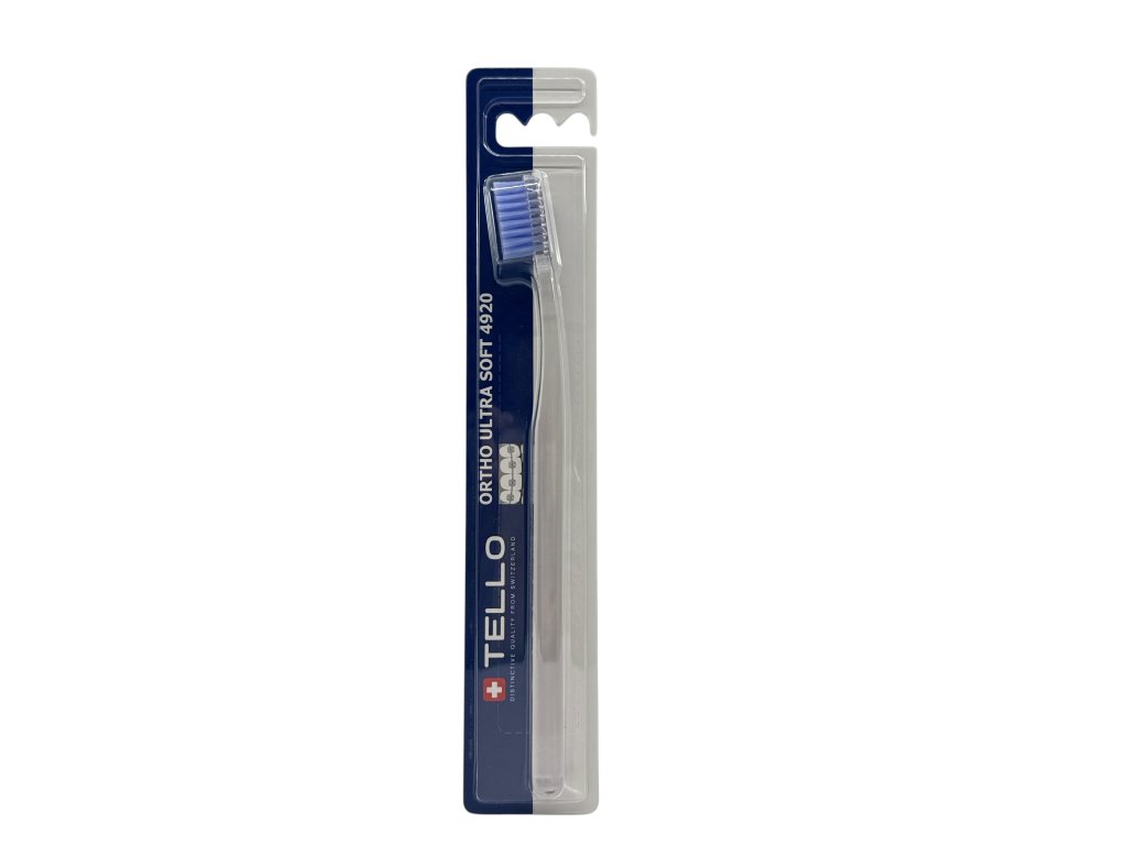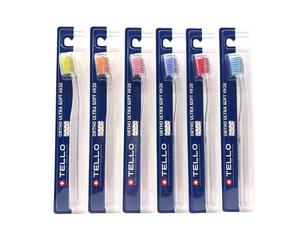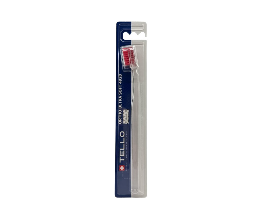 TELLO 4920 ORTHO je speciální zubní kartáček pro čištění fixních rovnátek. 4920 vláken s výřezem do tvaru ,,U,, ( zkrácení vláken prostření řady kartáčku) je velice efektivní a účinný při odstraňování zubního plaku v okolí drátku a zámečků. Má oválnou hlavu, kterou se jednoduše dostanete i do hůře přístupných míst, ergonomická rukojeť má oválný tvar, je vyrobena z průhledného PET s barevnými vlákny. Je vhodný pro zuby s malou citlivostí, šetrně čistí zuby a dásně bez podráždění.