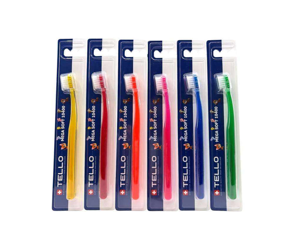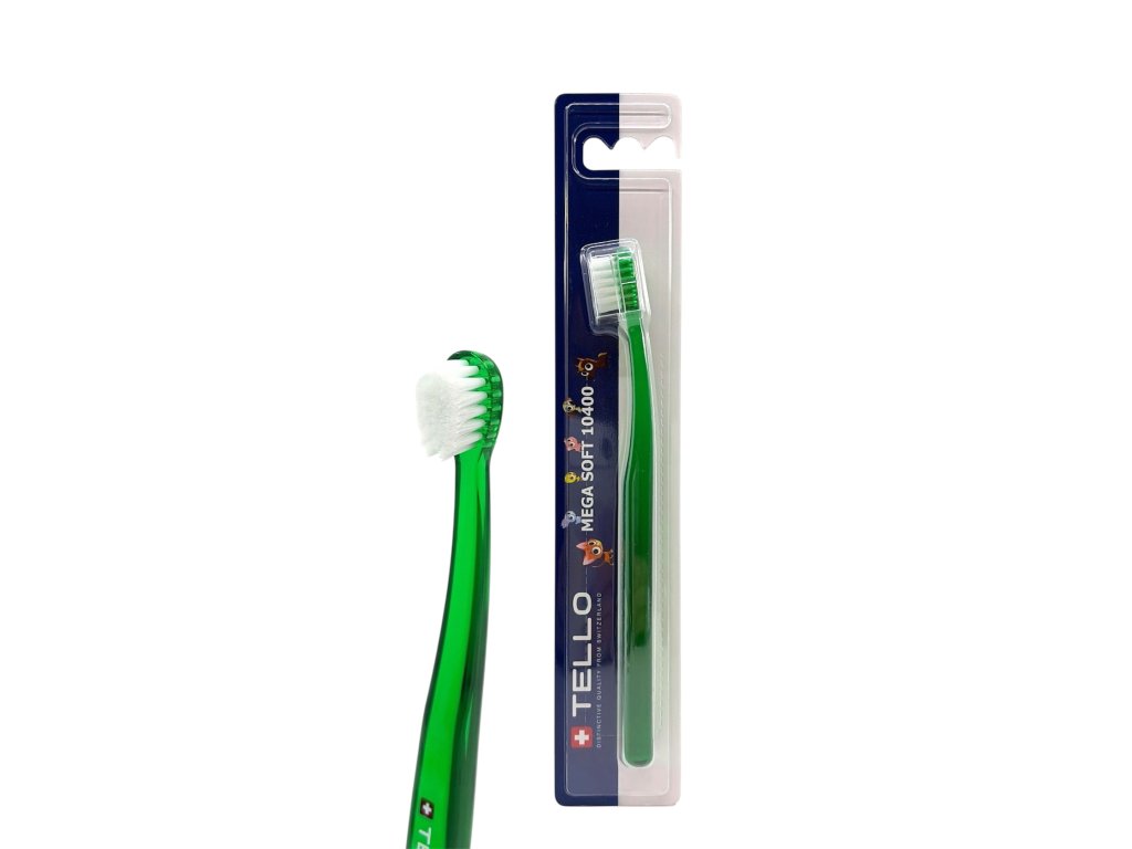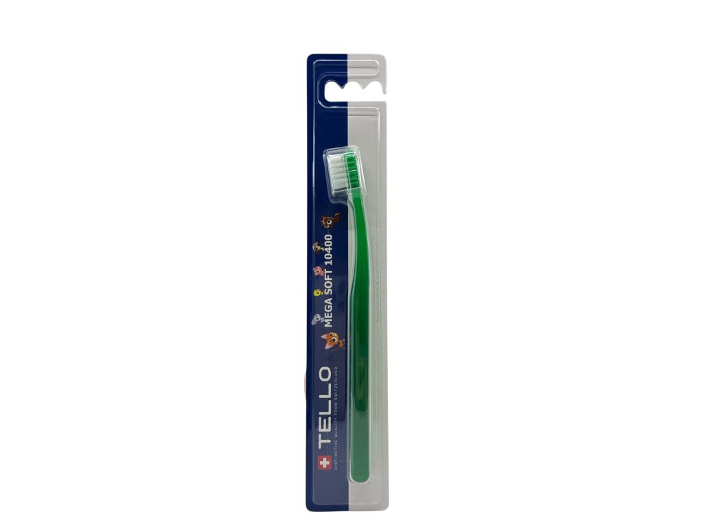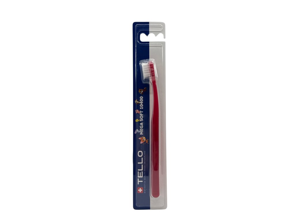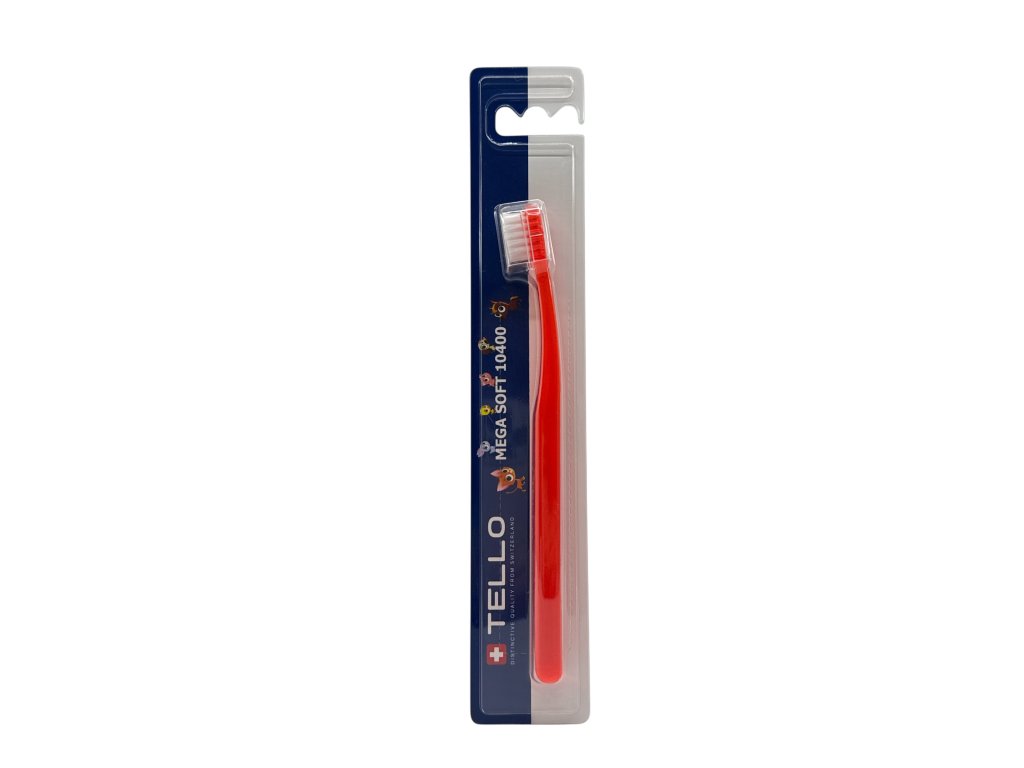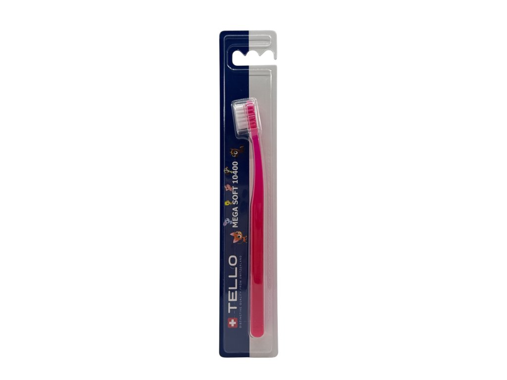 TELLO KIDS 10400 je extra jemný dětský zubní kartáček, 10400 vláken o průměru 0,10 mm ( každé vlákno se na konci dělí na další 4 ) efektivně a zároveň šetrně čistí dětské zoubky, díky jemným vláknům nepoškozuje dásně, má malou oválnou hlavu, kterou se jednoduše dostanete i do hůře přístupných míst, ergonomická rukojeť má oválný tvar, je vyrobena z průhledného PET v 7 různých barvách s bílými vlákny. Je vhodný pro děti od 2 - 7 let, uživatele s malou čelistí nebo pro velmi citlivé zuby a dásně.